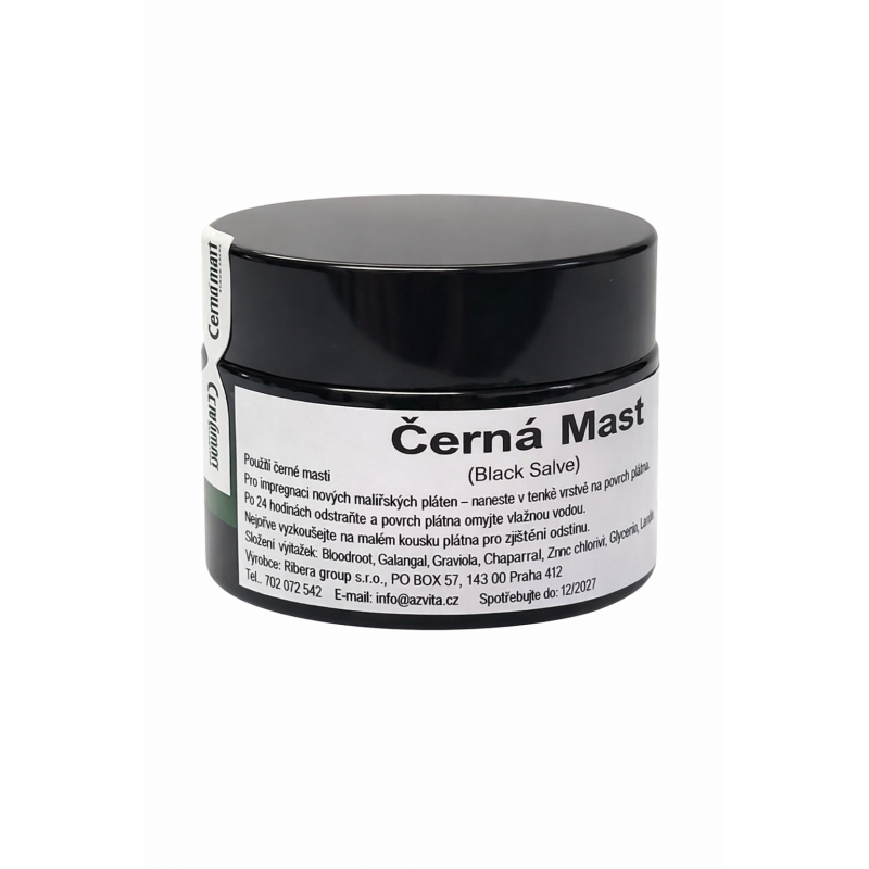 Použití černé masti Pro impregnaci nových malířských pláten – naneste v tenké vrstvě na povrch plátna a nechte působit. Po 24 hodinách odstraňte a povrch plátna omyjte vlažnou vodou. Nejdříve vyzkoušejte na malém kousku plátna pro zjištění odstínu. Černá mast zvyšuje stálobarevnost a přilnavost olejových barev.